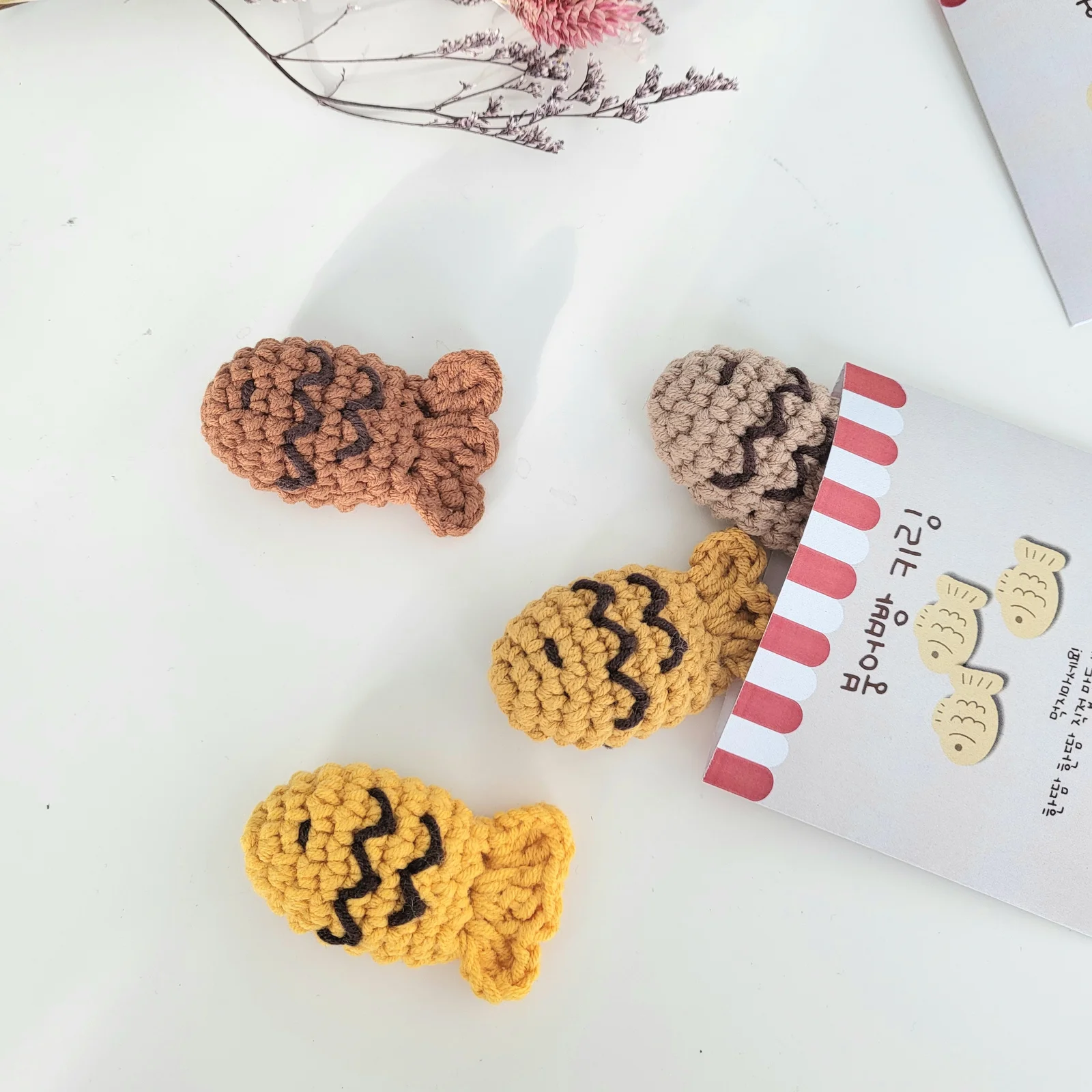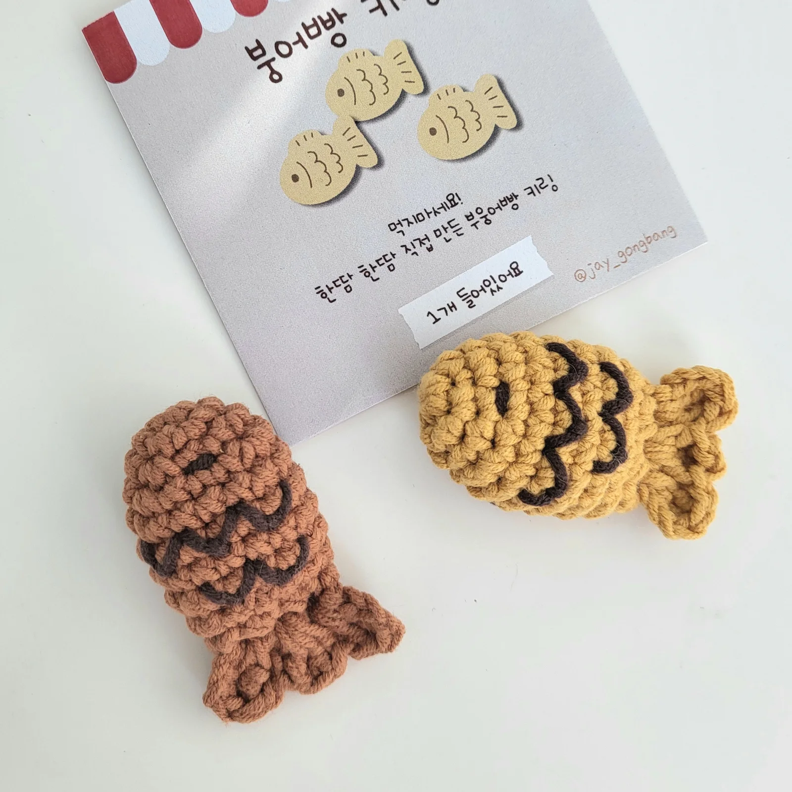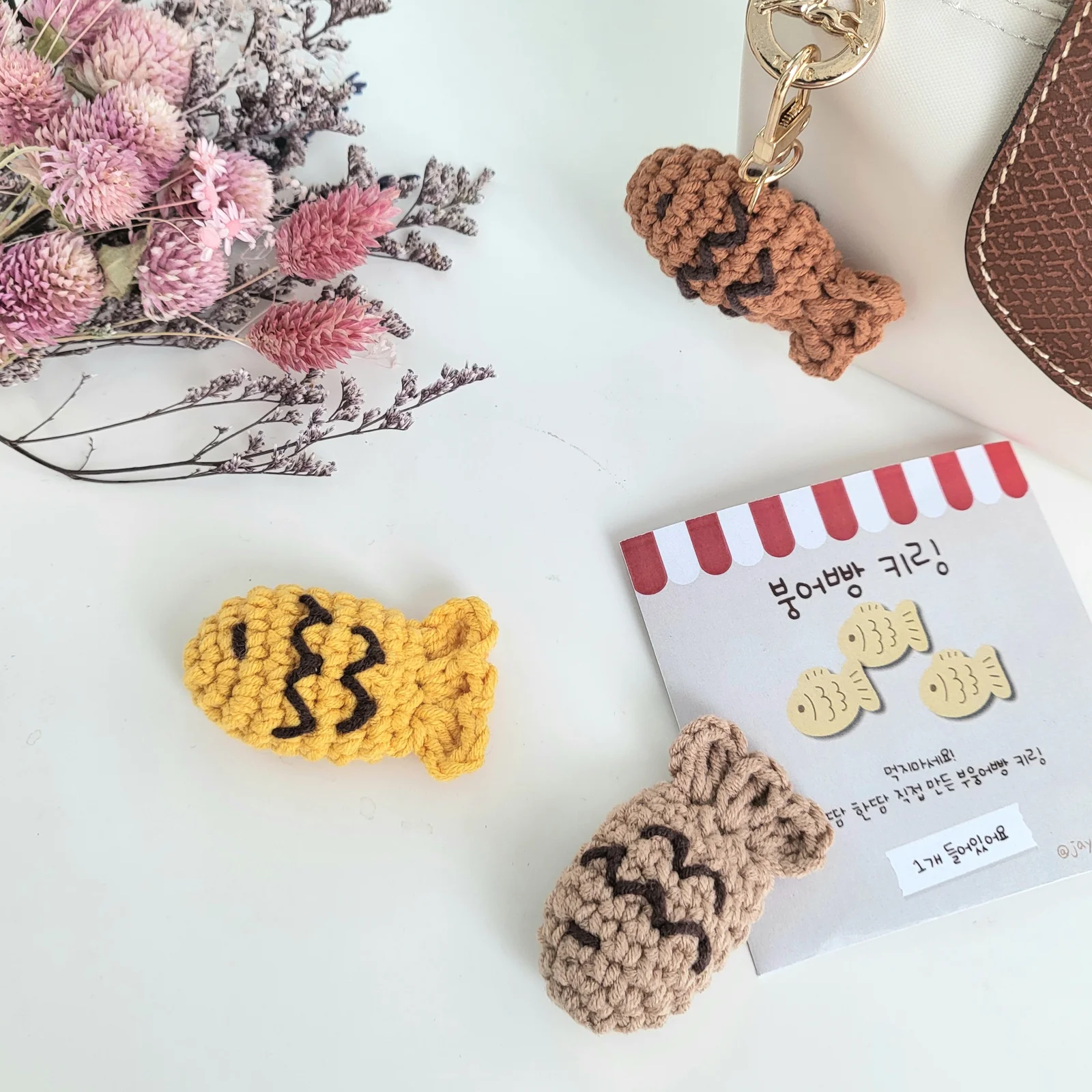 붕어빵 키링 옆에 놓인 작은 포장지를 보니, 진짜 붕어빵 가게에서 파는 듯한 느낌이 듭니다. '붕어빵 키링'이라고 적힌 빨간 줄무늬 포장지는 마치 포장마차의 따뜻한 정취를 그대로 옮겨놓은 것 같습니다. 6cm x 3.5cm라는 아담한 크기지만, 붕어빵의 특징적인 비늘 무늬와 둥근 형태가 꼼꼼히 재현되어 있어 보는 이로 하여금 미소를 짓게 만듭니다. 각각의 색깔별로 정성스럽게 만들어진 모습에서, 겨울밤 포장마차의 따뜻한 추억이 되살아납니다.
